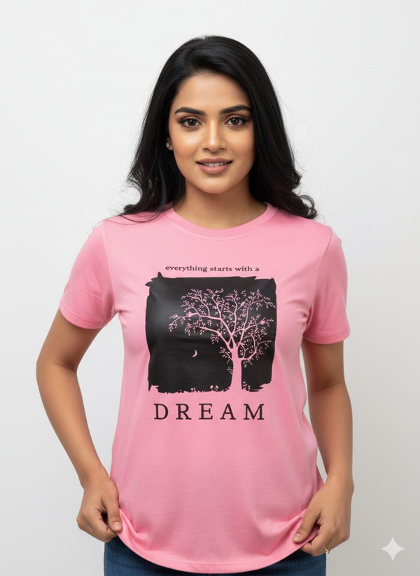 Home WOMEN T-shirt Dream Print Regular Fit Crew Neck